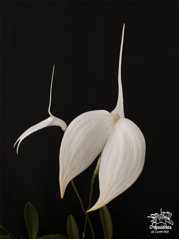 La Masdevallia Coccinea Alba es una variedad de orquídea conocida por sus flores blancas y brillantes. Pertenece al género Masdevallia, que se caracteriza por tener flores pequeñas y vistosas, con formas y colores variados. La Coccinea Alba es una especie epífita que se encuentra principalmente en regiones montañosas de América del Sur, como Ecuador y Perú. Sus flores son de tamaño pequeño a mediano y tienen un aspecto elegante y delicado. Se cultiva en condiciones de alta humedad y temperaturas frescas a intermedias, lo que la hace popular entre los aficionados a las orquídeas.