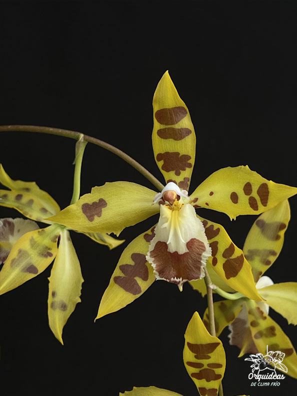 La Odontoglossum spectatissimum es una especie de orquídea reconocida por sus impresionantes flores y su atractivo ornamental. Originaria de las regiones montañosas de América del Sur, como Colombia y Ecuador, esta orquídea epífita crece en hábitats frescos y húmedos. Sus flores son grandes y vistosas, con pétalos y sépalos que pueden presentar una amplia gama de colores, incluyendo blanco, rosa, amarillo y púrpura, a menudo con manchas o rayas que añaden interés visual. La Odontoglossum spectatissimum es apreciada por su exuberante floración y su capacidad para agregar belleza y elegancia a cualquier colección de orquídeas. Se cultiva con cuidado en condiciones de alta humedad y temperaturas frescas a intermedias para garantizar su salud y desarrollo óptimos. Esta especie es popular entre los aficionados a las orquídeas y puede encontrarse tanto en colecciones privadas como en entornos de cultivo comercial.